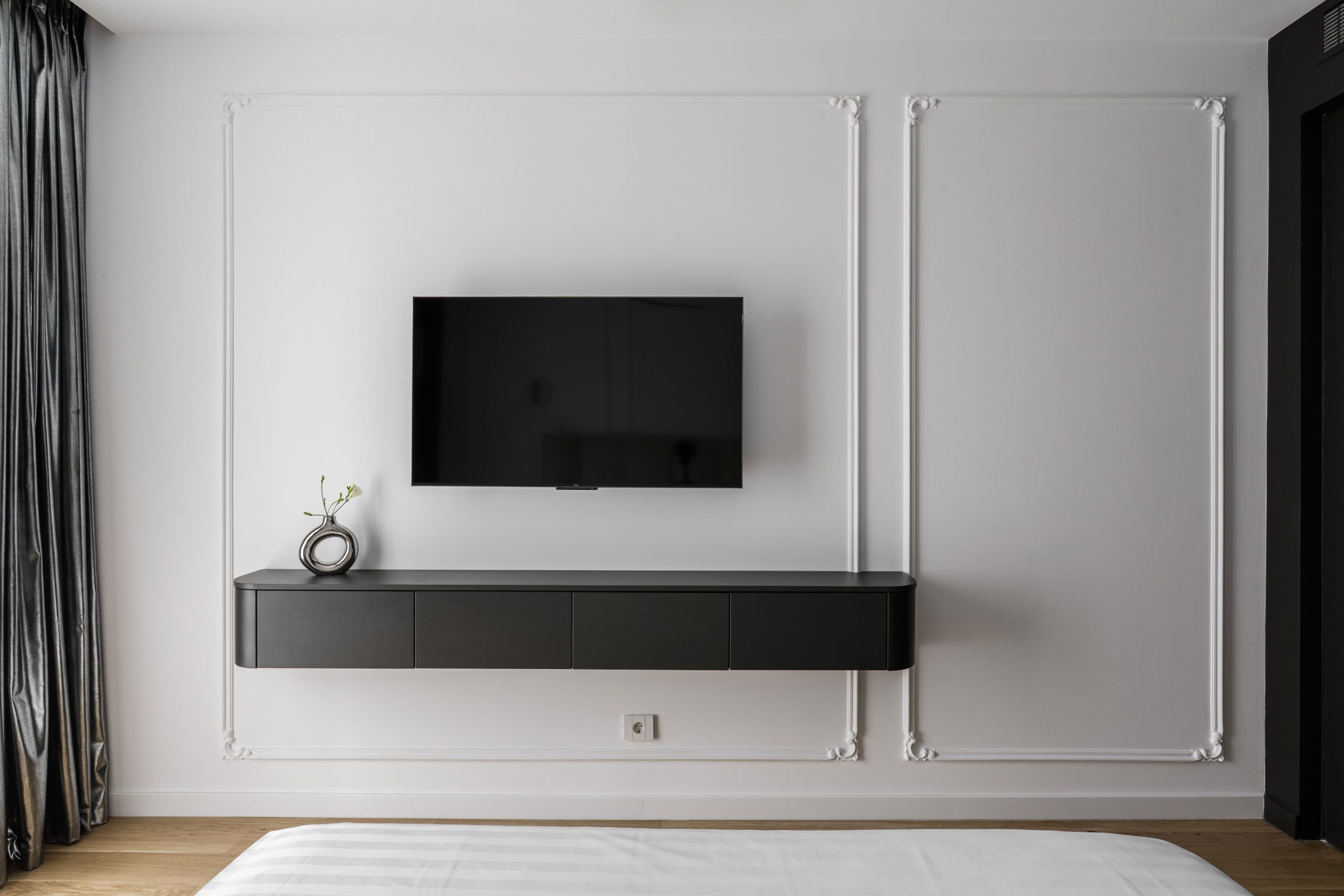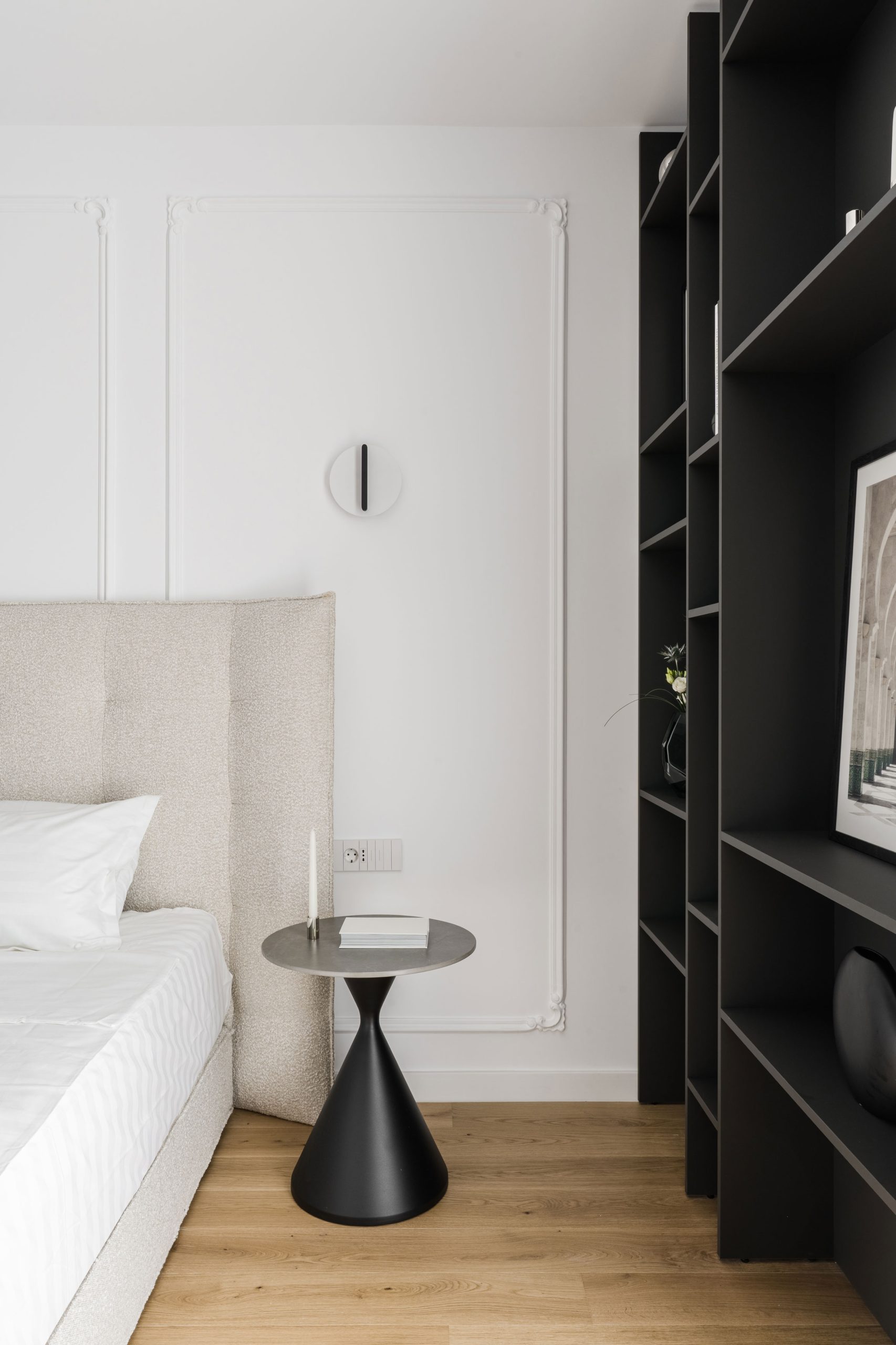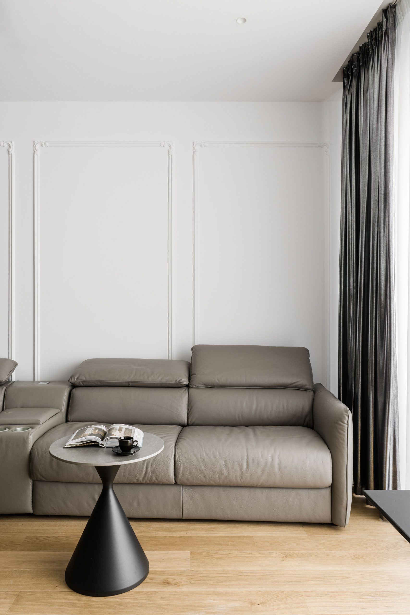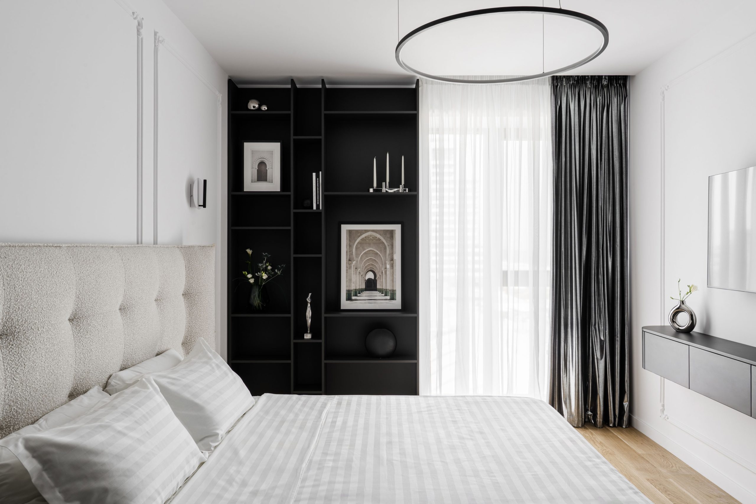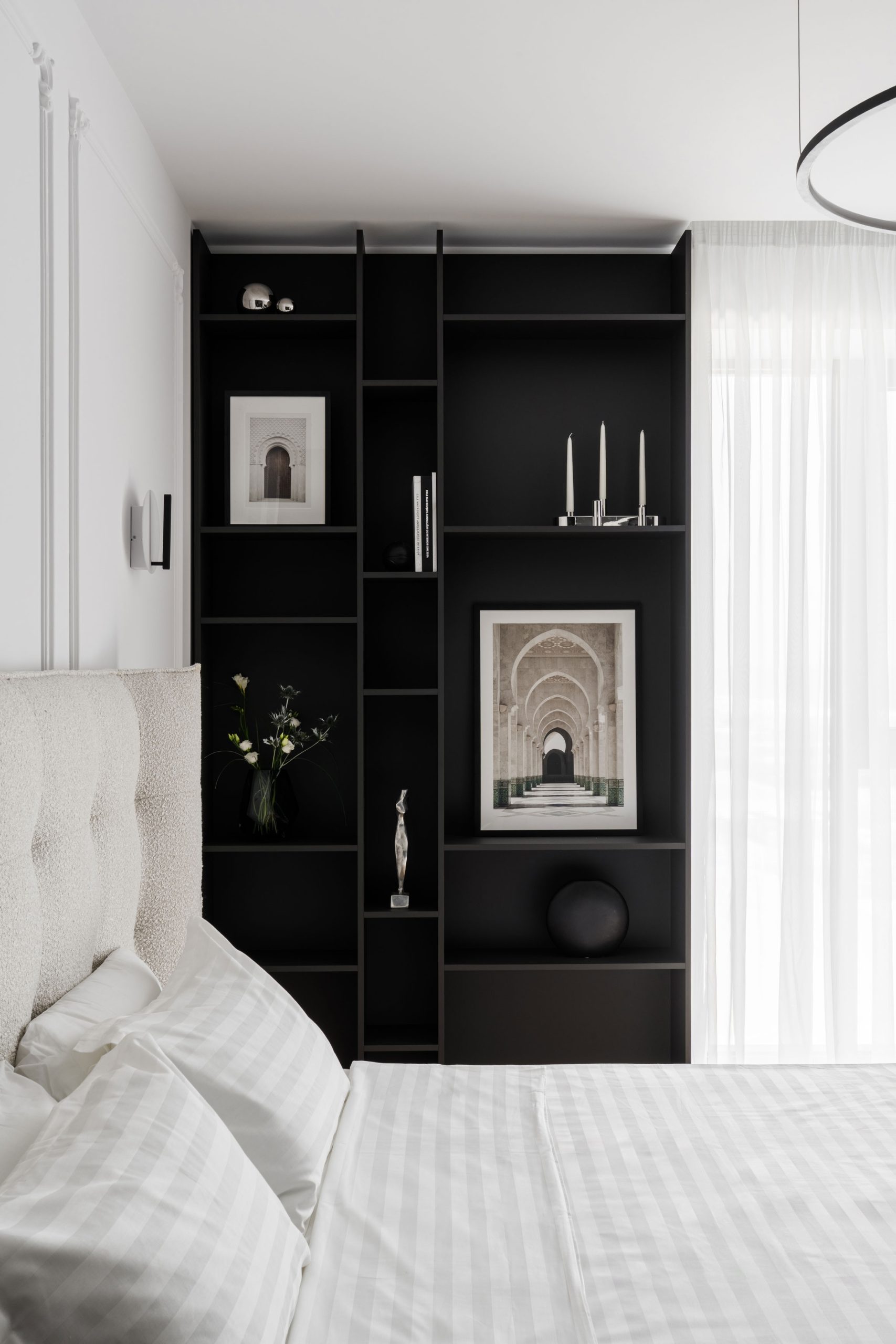 Rezultatul este un interior elegant și atemporal, în care monocromia nu limitează expresia, ci o rafinează, transformând spațiul într-o narațiune vizuală coerentă și profund personală.